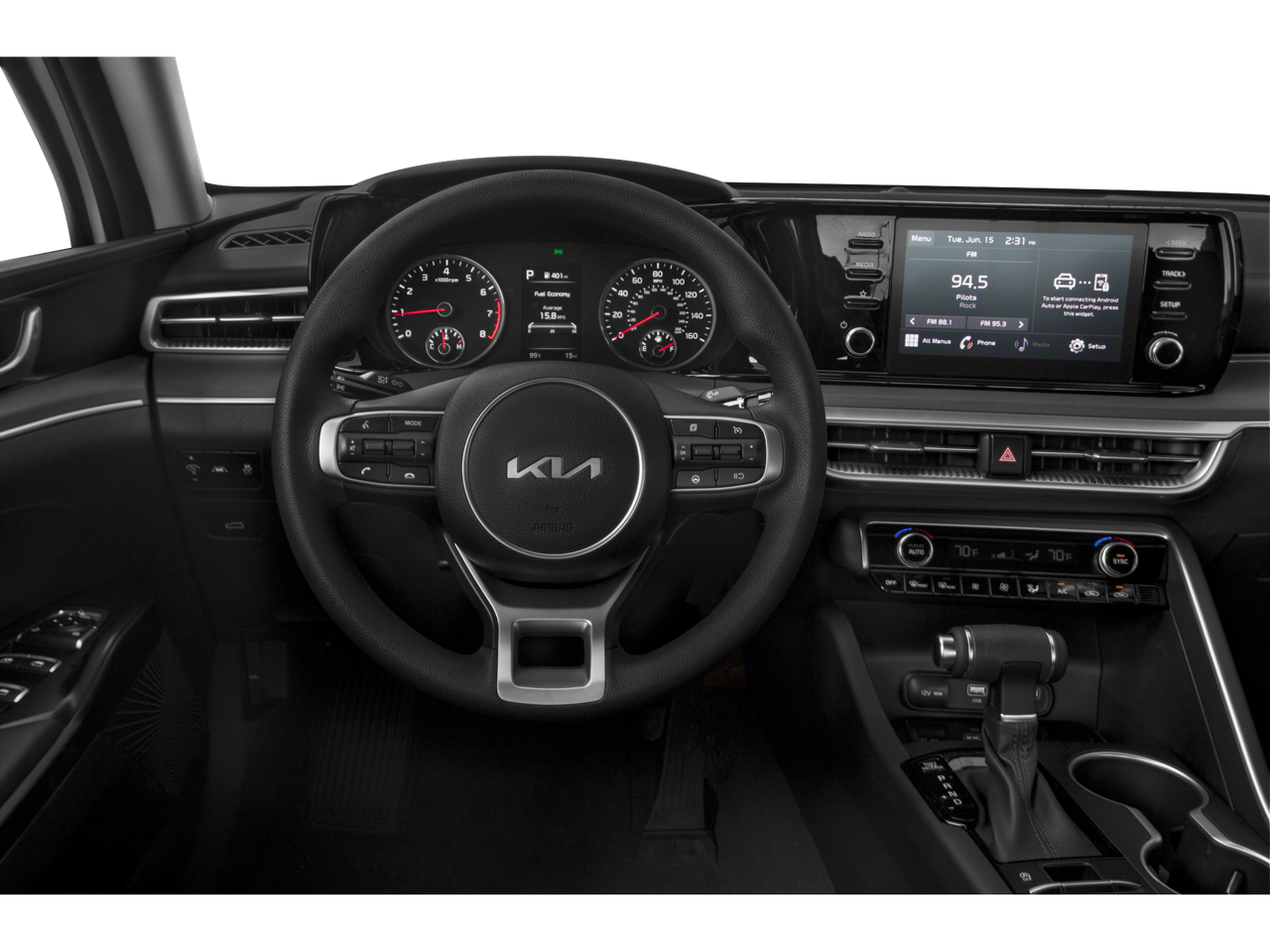 See what's behind you with the back up camera on this 2022 Kia K5 . The leather seats in this model are a must for buyers looking for comfort, durability, and style. This 2022 Kia K5 offers Automatic Climate Control for personalized comfort. The Kia K5's Lane Departure Warning helps keep you in your lane. Keep your hands warm all winter with a heated steering wheel in this unit . Our dealership has already run the CARFAX report and it is clean. A clean CARFAX is a great asset for resale value in the future. Bluetooth® technology is built into this unit, keeping your hands on the steering wheel and your focus on the road. Good News! This certified CARFAX 1-owner vehicle has only had one owner before you. The Kia K5 offers Apple CarPlay for seamless connectivity. The installed navigation system will keep you on the right path. This model comes equipped with Android Auto for seamless smartphone integration on the road.